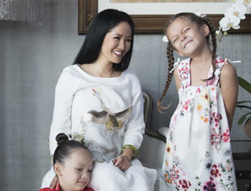 Hồng Nhung đang sống cùng hai con song sinh trong căn biệt thự Beverly Hills - nơi có bể bơi và sân vườn rộng với nhiều cây xanh.