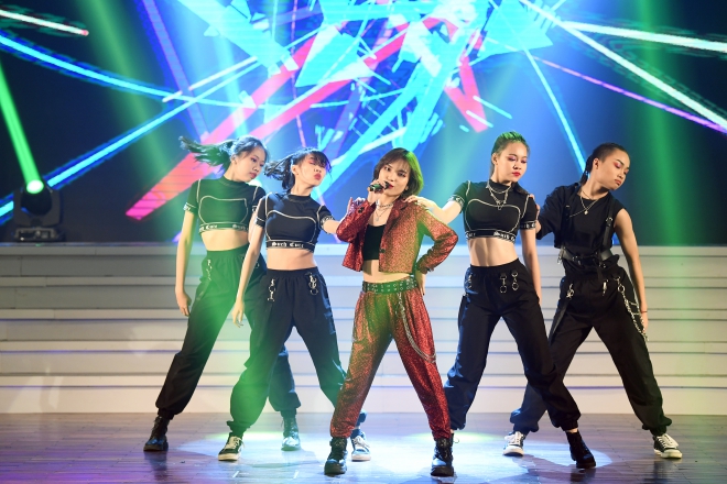 Nguyễn Hoàng Chí Bách là thí sinh nhận được sự cổ vũ nồng nhiệt của khán giả ngay khi vừa bước ra sân khấu. Cậu bé nhỏ tuổi nhất cuộc thi diện bộ vest đỏ rực vừa hát vừa đọc rap, thể hiện vũ đạo điêu luyện với “Fire”.